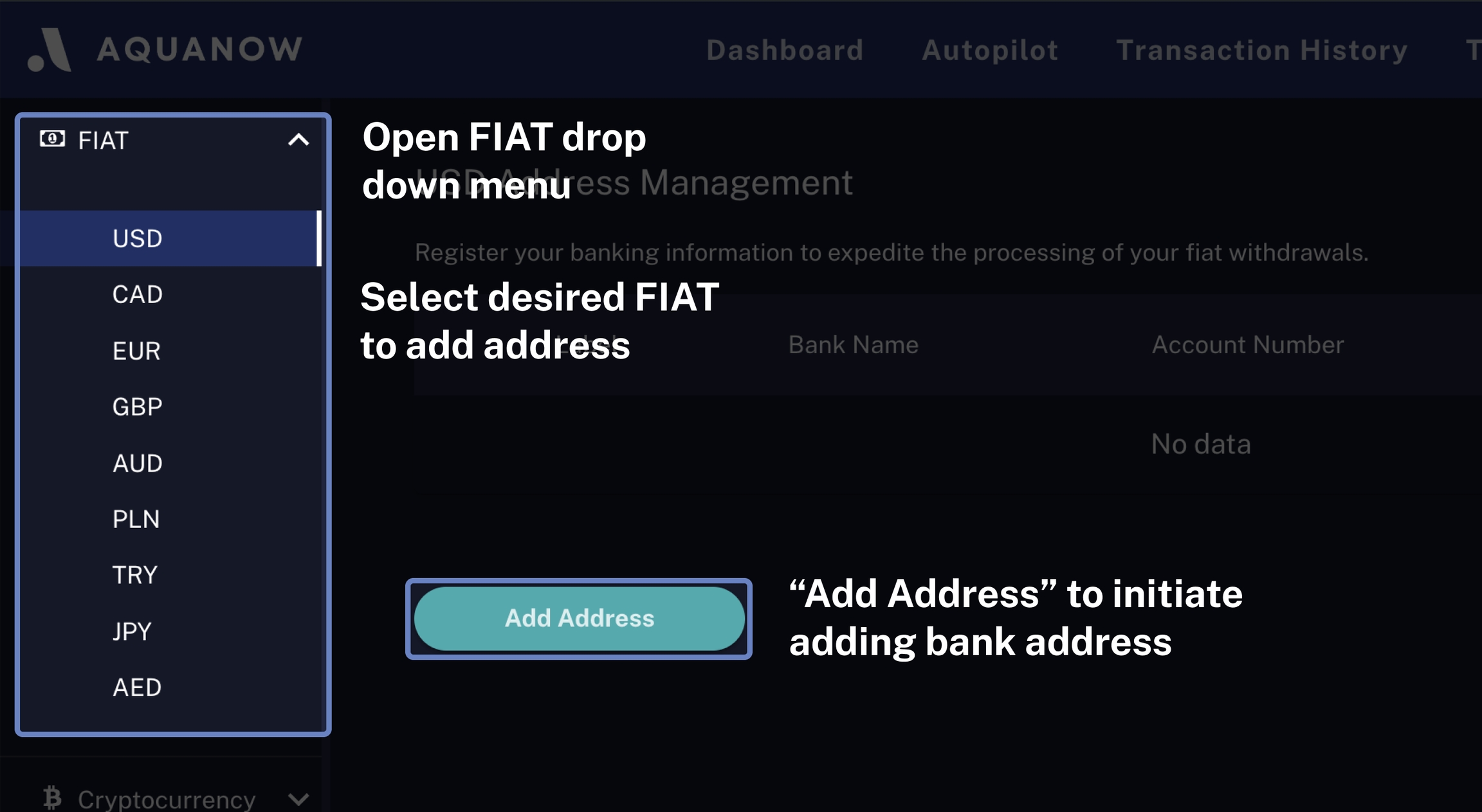 Managing wallet addresses for Crypto and Fiat Withdrawals