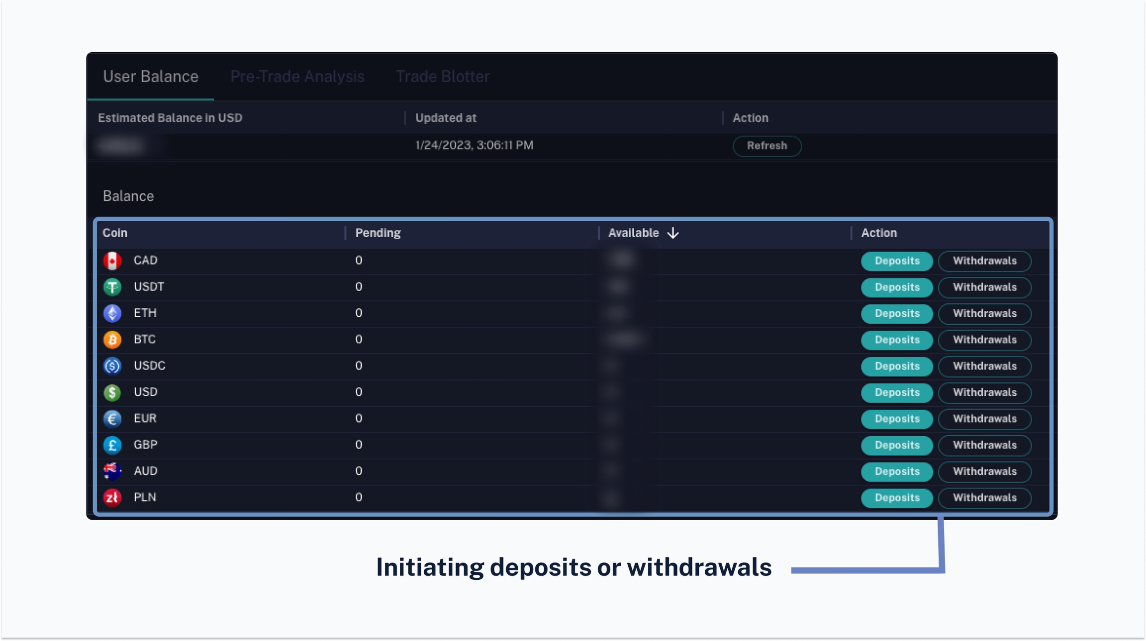 For more information, visit the Deposits or Withdrawals section of the documentation.