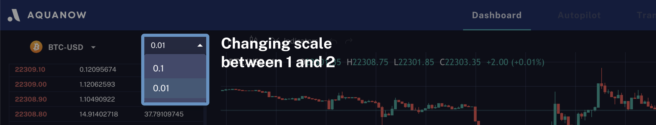 Price precision can be adjusted as desired to display grouped or ungrouped liquidity in the order book at the user selected price intervals.