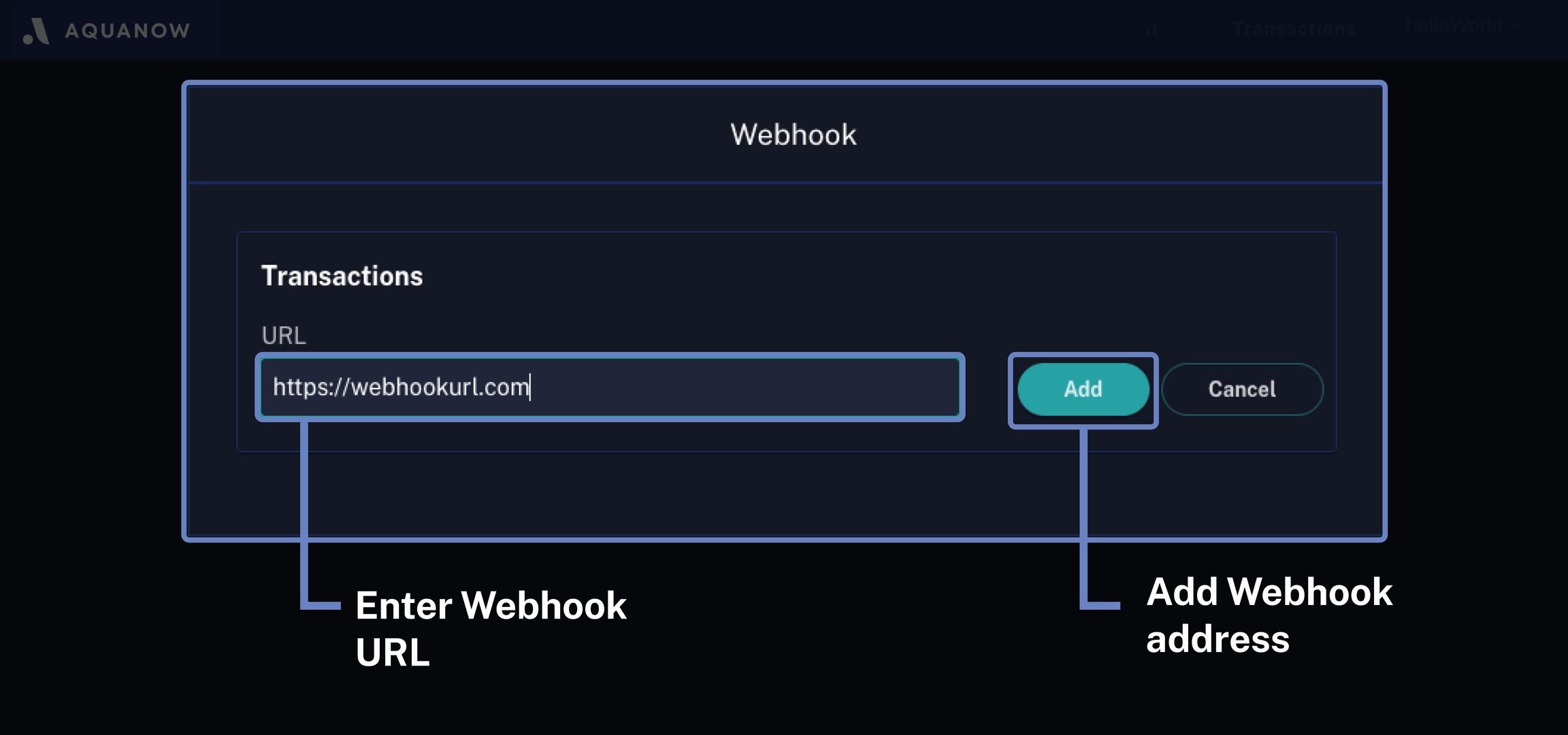 Aquanow offers Webhook callbacks for clients that want to be updated when a transaction is detected on-chain or finalized. Currently we support Webhooks for transactions (deposits and withdraw).