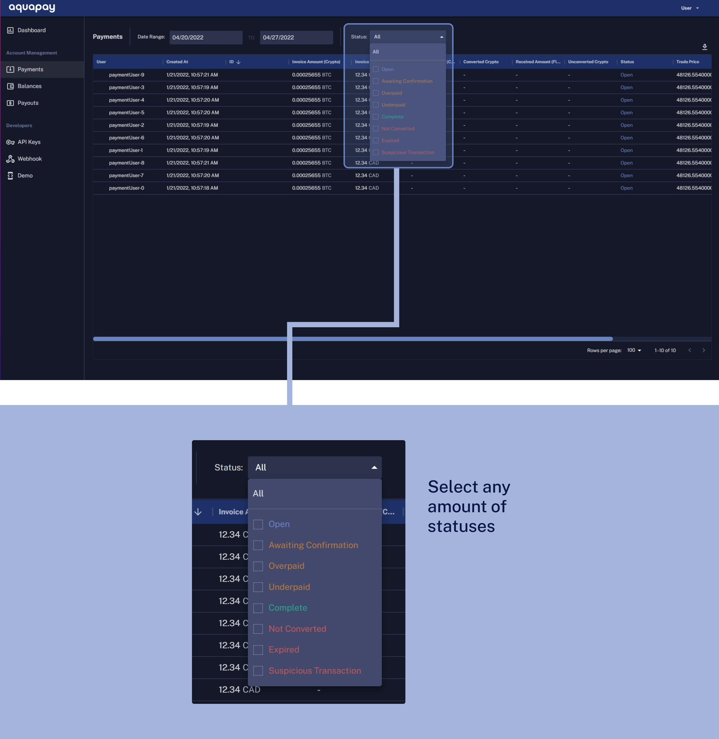 Status is a filter you can utilize to customize your table view. You may select as few or as many statuses you would like to see on the table.